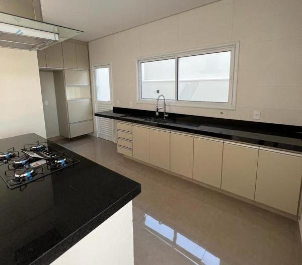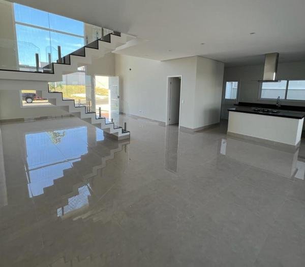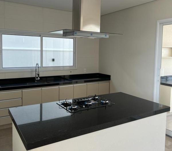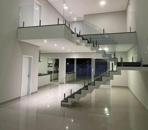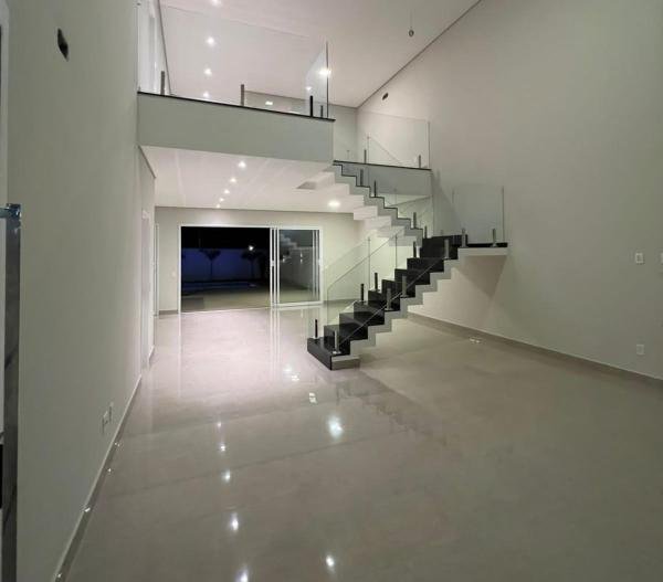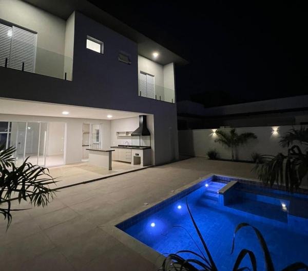 Maravilhosa casa localizada em Condomínio de Indaiatuba, nunca habitada, assobradada, com 3 suítes, living para 2 ambientes, sendo a sala de estar com pé direito duplo, escritório, lavabo, cozinha americana com armários - coifa - cooktop, área gourmet com armários, área de serviço, 1 WC social externo, 4 vagas de garagem, piscina com Spa e prainha, residência integrada e arejada, paisagismo diferenciado, iluminação em led, entrada em mosaico português, preparada para aquecimento solar e para ar-condicionado, acabamentos de primeira linha, área construída de 284,00 m2 em um terreno de 337,00 m2.
