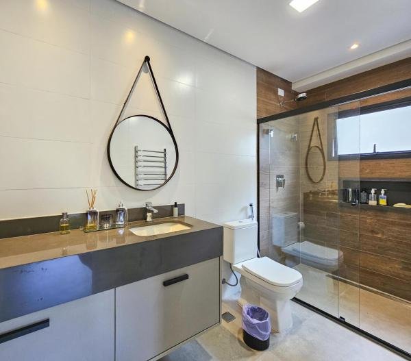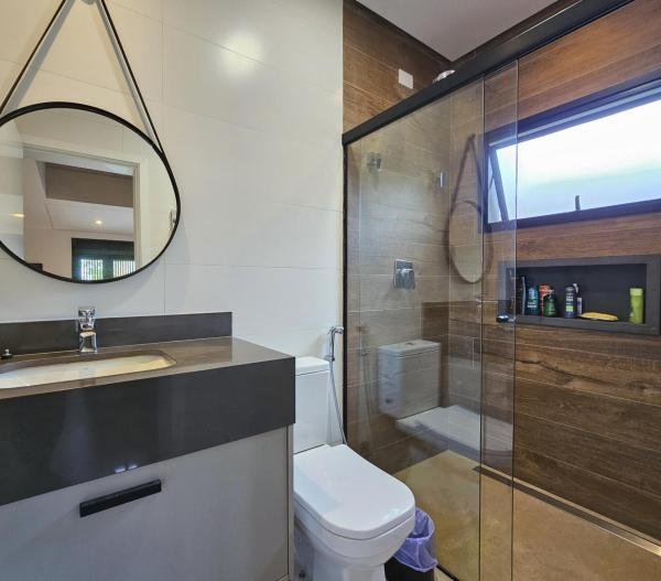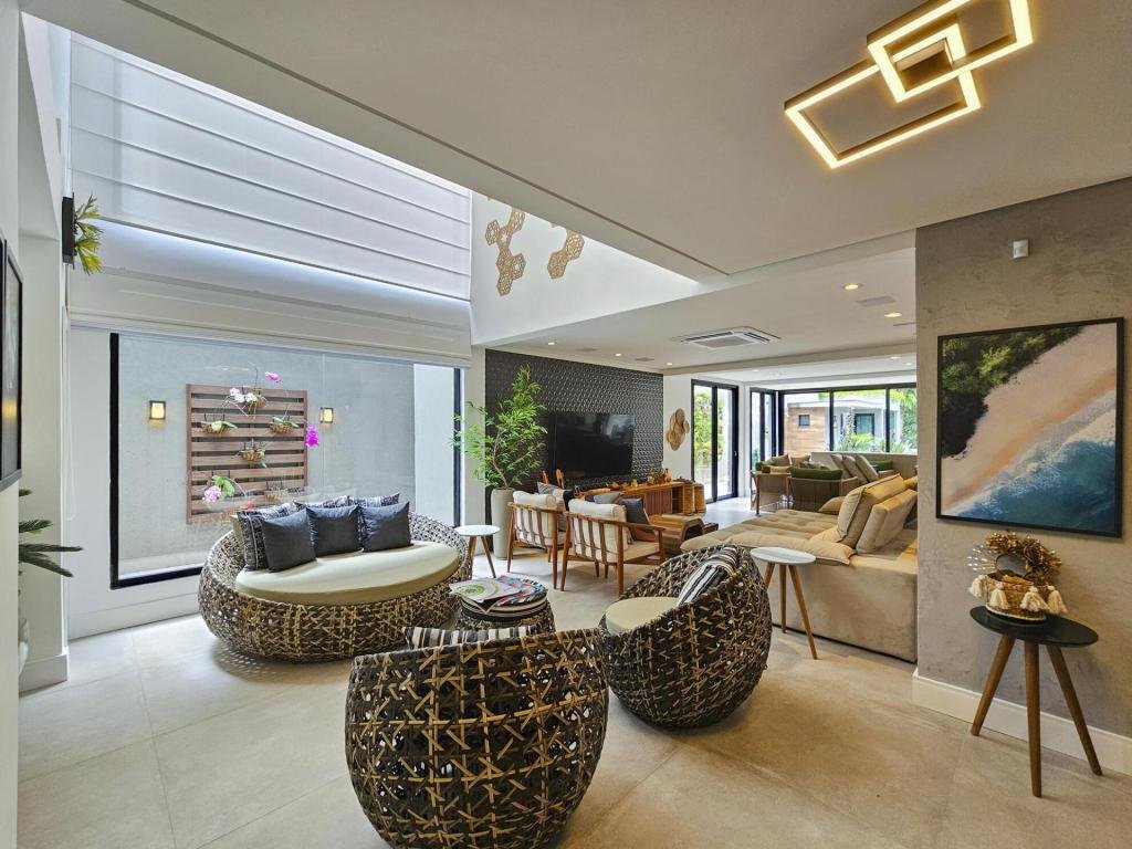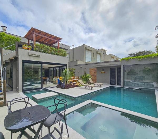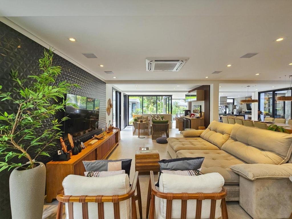 Casa altamente luxuosa e minimalista. Localizada em um dos mais prestigiados módulos, esta deslumbrante residência minimalista oferece uma exclusividade sem igual. Com um design arrojado, esta propriedade oferece o equilíbrio perfeito entre luxo e simplicidade. Com 06 suítes elegantemente decoradas, com armários embutidos e ar-condicionado, cada uma com seu próprio toque de requinte, os hóspedes são recebidos em um ambiente de sofisticação e conforto. Os amplos espaços comuns fluem harmoniosamente, proporcionando um ambiente acolhedor para entretenimento ou relaxamento. A integração perfeita entre os interiores e exteriores permite que os moradores desfrutem da serenidade natural do entorno, enquanto desfrutam de todas as comodidades modernas. Esta casa é verdadeiramente um refúgio exclusivo para aqueles que buscam o melhor em estilo de vida contemporâneo. Seja para apreciar a tranquilidade deste oásis, esta casa representa o pináculo do luxo discreto. São 3 pavimentos, churrasqueira, home theater, sauna, praça de fogo, sala de TV e jogos, piscina aquecida, com cascata e hidromassagem, carregador para carros elétricos. Sua área construída é de 463,81 m, em um terreno de 481,00 m² e possui acesso para a PE-12 privativa.