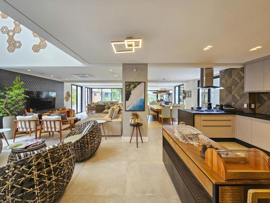 Casa altamente luxuosa e minimalista. Localizada em um dos mais prestigiados módulos, esta deslumbrante residência minimalista oferece uma exclusividade sem igual. Com um design arrojado, esta propriedade oferece o equilíbrio perfeito entre luxo e simplicidade. Com 06 suítes elegantemente decoradas, com armários embutidos e ar-condicionado, cada uma com seu próprio toque de requinte, os hóspedes são recebidos em um ambiente de sofisticação e conforto. Os amplos espaços comuns fluem harmoniosamente, proporcionando um ambiente acolhedor para entretenimento ou relaxamento. A integração perfeita entre os interiores e exteriores permite que os moradores desfrutem da serenidade natural do entorno, enquanto desfrutam de todas as comodidades modernas. Esta casa é verdadeiramente um refúgio exclusivo para aqueles que buscam o melhor em estilo de vida contemporâneo. Seja para apreciar a tranquilidade deste oásis, esta casa representa o pináculo do luxo discreto. São 3 pavimentos, churrasqueira, home theater, sauna, praça de fogo, sala de TV e jogos, piscina aquecida, com cascata e hidromassagem, carregador para carros elétricos. Sua área construída é de 463,81 m, em um terreno de 481,00 m² e possui acesso para a PE-12 privativa.