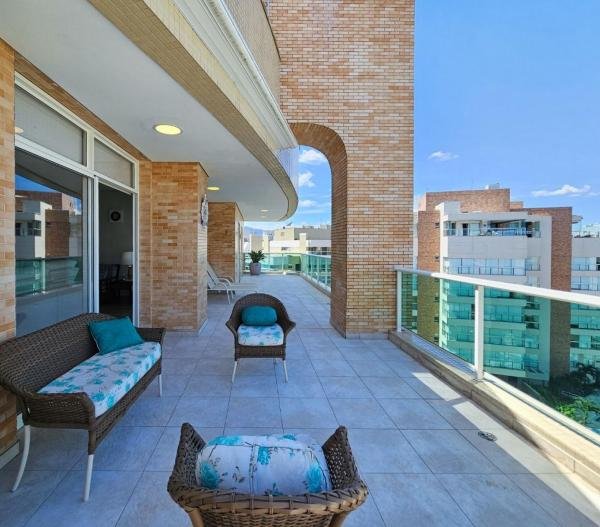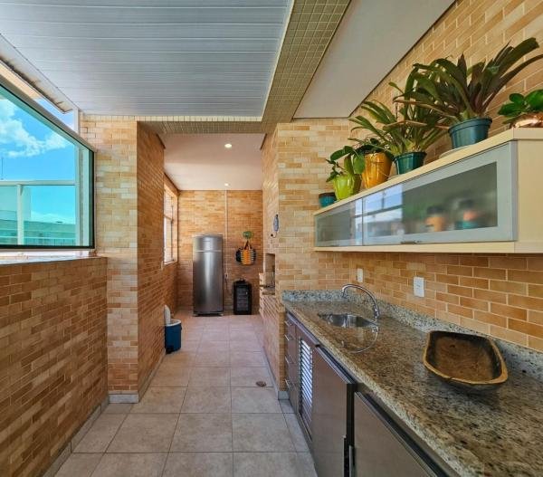 Cobertura de luxo no Módulo 7 da Riviera de São Lourenço com 267,40m² de área útil. Este imóvel dispõe de 4 quartos, incluindo 3 suítes, e 3 vagas de garagem. A sala de estar é ampla, a cozinha é completa e há uma área de serviço conveniente. O condomínio oferece diversas opções de lazer, incluindo uma piscina para dias de relaxamento, uma sauna para descontrair, churrasqueira para encontros ao ar livre, playground para crianças, salão de jogos e salão de festas para entretenimento. Esta cobertura é o local perfeito para viver com conforto e sofisticação na deslumbrante Riviera de São Lourenço.